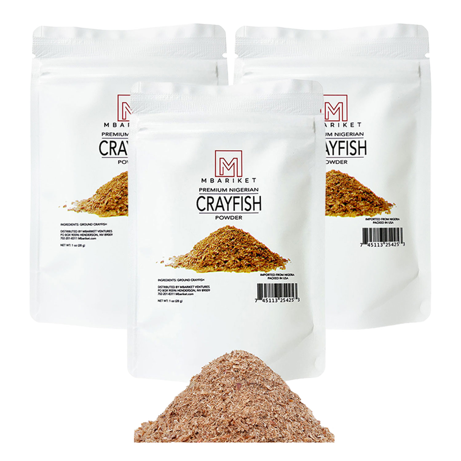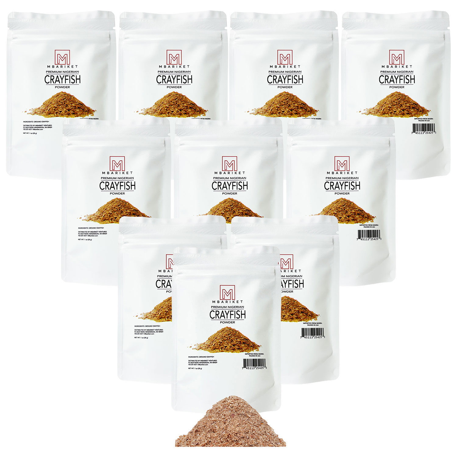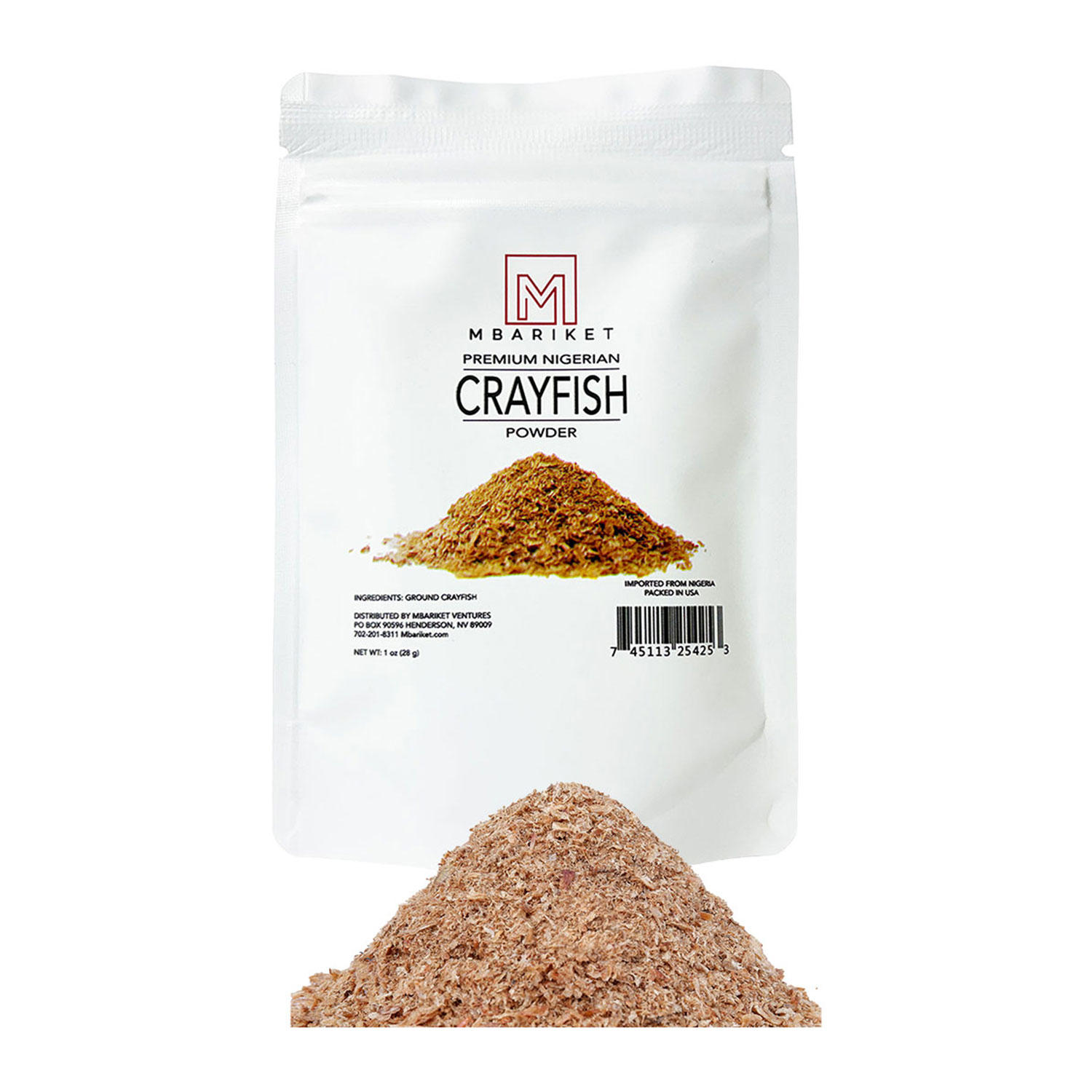 Mbariket Premium Crayfish Powder — Bold Umami Crawfish Seasoning for Rice, Soups, Chicken & Grilling. Add while cooking or after plating.